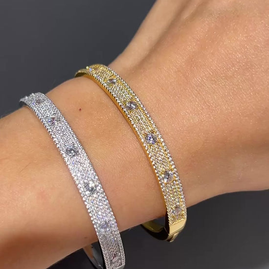 An exquisite narrow bracelet with brilliant rows of sparkling stones, designed to emphasize sophistication and elegance. The discreet but luxurious design makes this bracelet a perfect accessory for both everyday life and parties. Made from premium materials for a timeless feel and superior quality - a piece of jewelery that will last a lifetime! Genuine 925 silver.
